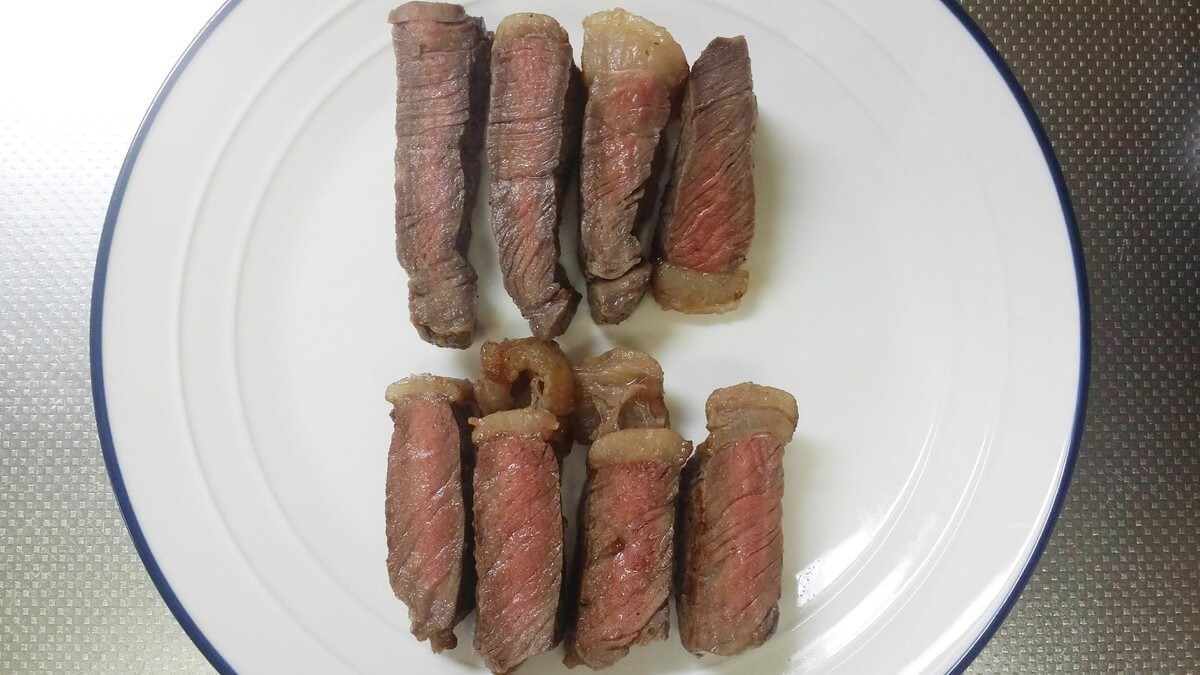 でも食べてみるとびっくり!!柔らかさが全然違いました。ブライン液に浸けた肉はぐっと柔らかくなっていました。安いステーキ肉を買った時は試してみると高級肉感が味わえるかも!