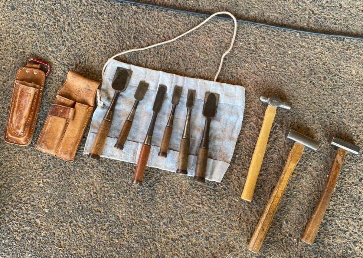 というのも、ホゾ加工で使う写真のようなゲンノウやノミなどは、1本ずつではなく、用途に合わせて数本ずつ使うんです。