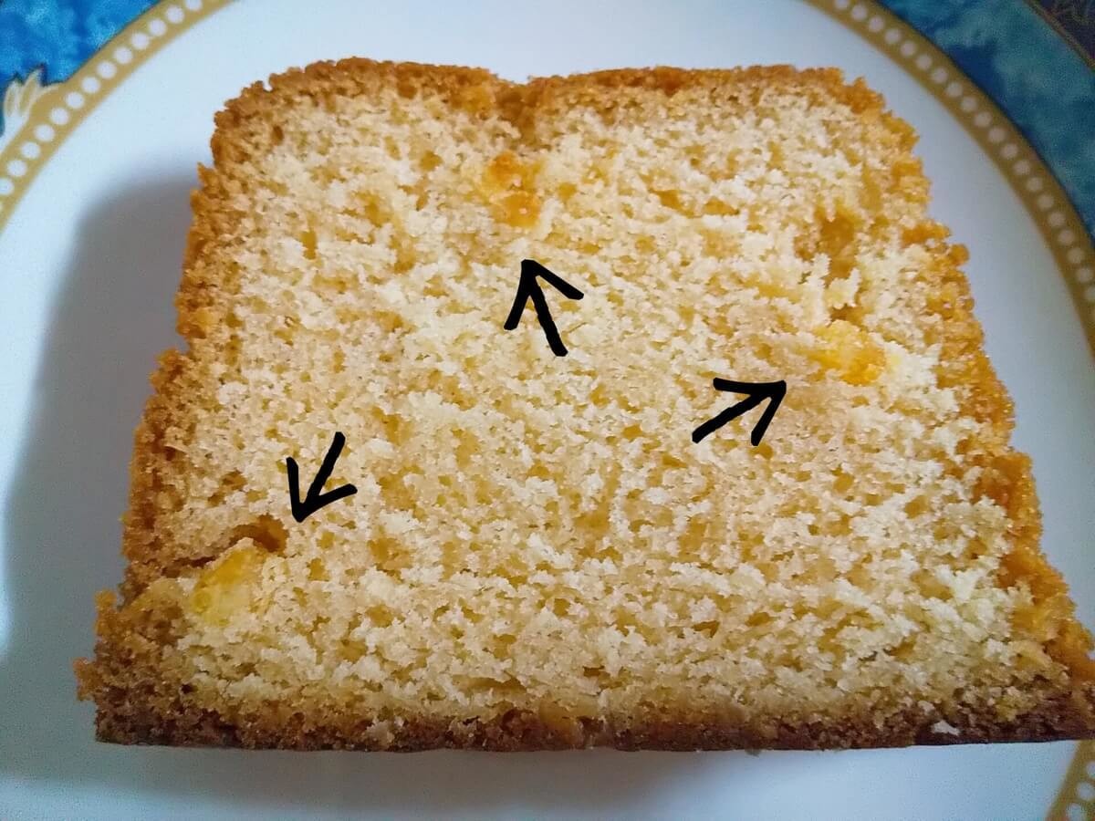 矢印で示しているのが、オレンジピール。この価格で目で確認できる大きさが入っているのは優秀ですよね。