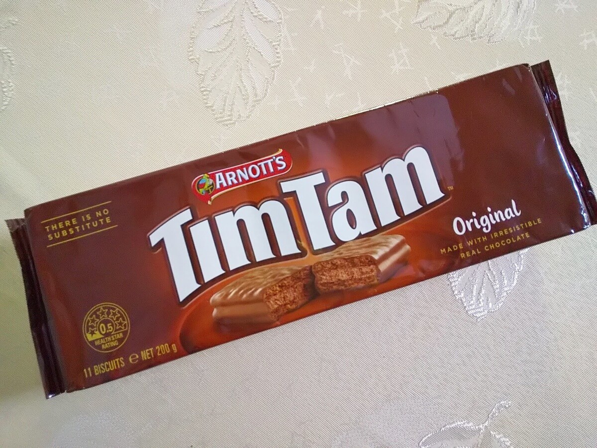 ティムタムはオーストラリアのチョコレート菓子。チョコレートをクッキーで挟み、さらにチョココーティングされた、まさにチョコ尽くしの一品。 甘さが強いので好き嫌いがはっきりしそうですが、私はどっぷりハマってしまいました。
