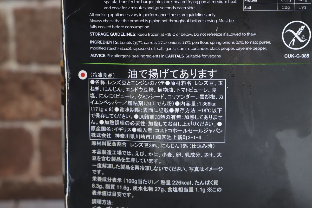 原材料を見てもお肉は一切入っておらず、メインはレンズ豆、玉ねぎ、にんじんです。そしてエンドウ豆粉、スパイスや調味料が入っています。