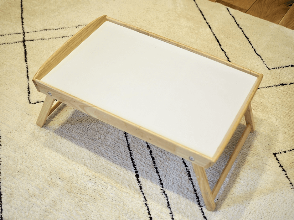 ですが我が家では、ベッドトレイ本来の使い方をしたことはなく、もっぱら子ども用のミニテーブルとして使用中。