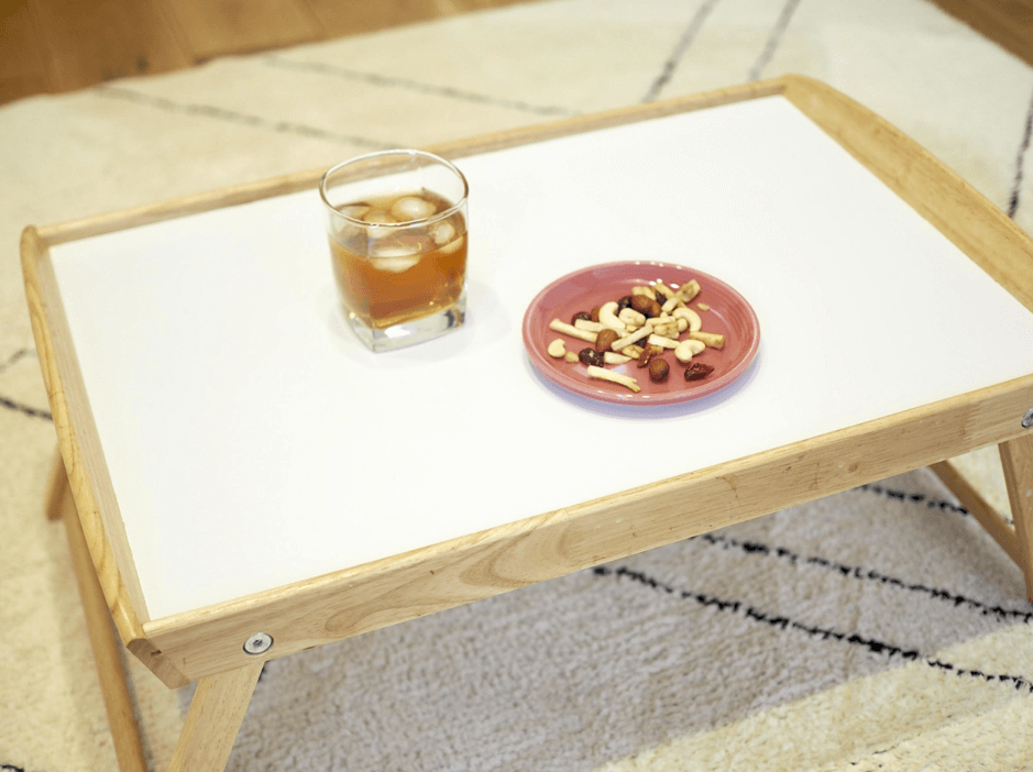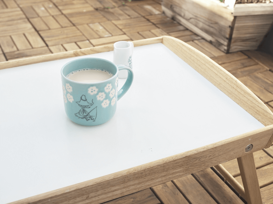 「大きなアウトドアテーブルを出すのは面倒」という時にも、IKEAのベッドトレイ『DJURA(ジューラ)』が大活躍してくれます。