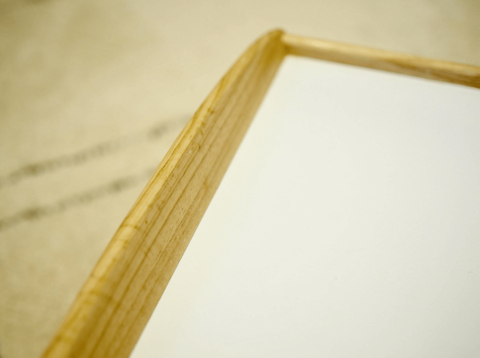 ナチュラルな木目調のフレームに、ホワイトに塗装されたトレイ面が付いています。