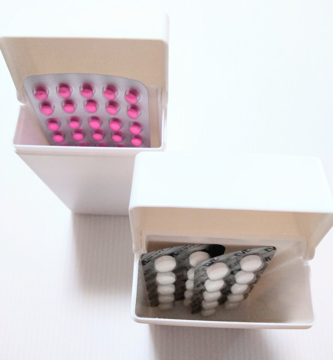 薬によっては箱ごと収納できたり、薬のシートがまるごと収納できます。