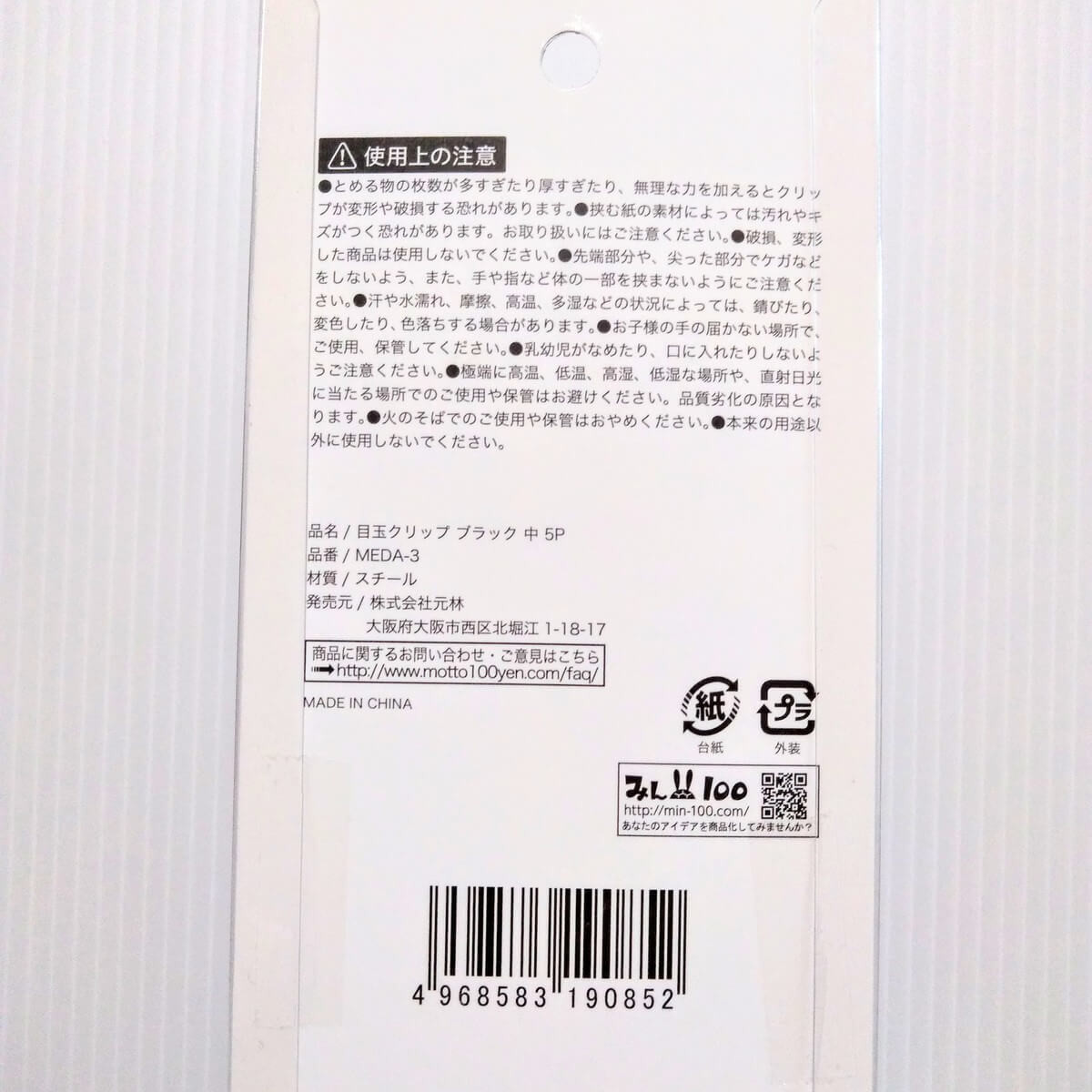 - 目玉クリップ ブラック 中 5P 100円(税別)