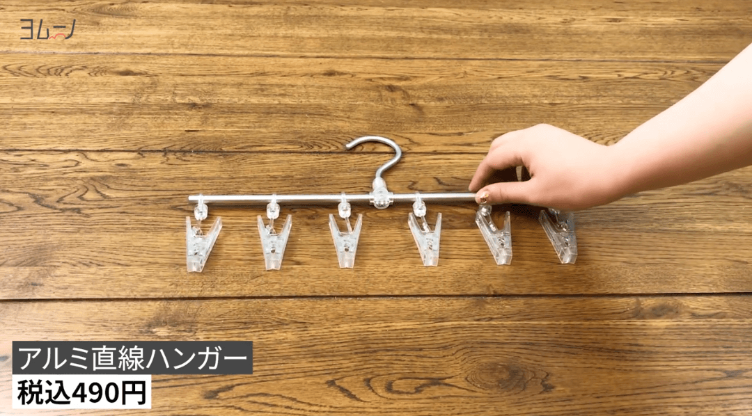 - 無印良品「アルミ直線ハンガー 約幅35cm・6ピンチ」490円(税込)