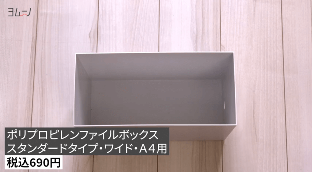 - 無印良品「ポリプロピレンファイルボックス・スタンダードタイプ・ワイド・A4用」590円(税込)