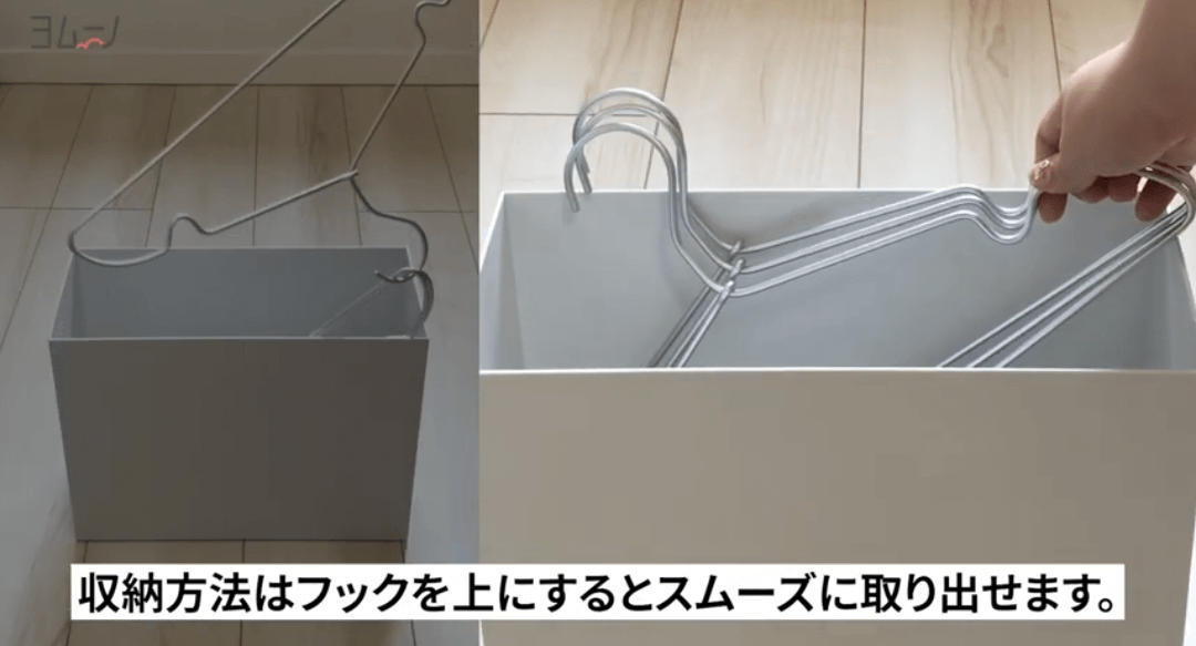 ハンガーを収納するときは、このようにフックを上にするとスムーズに取り出せます。 ハンガー同士が引っかからないためストレスなく使えます。
