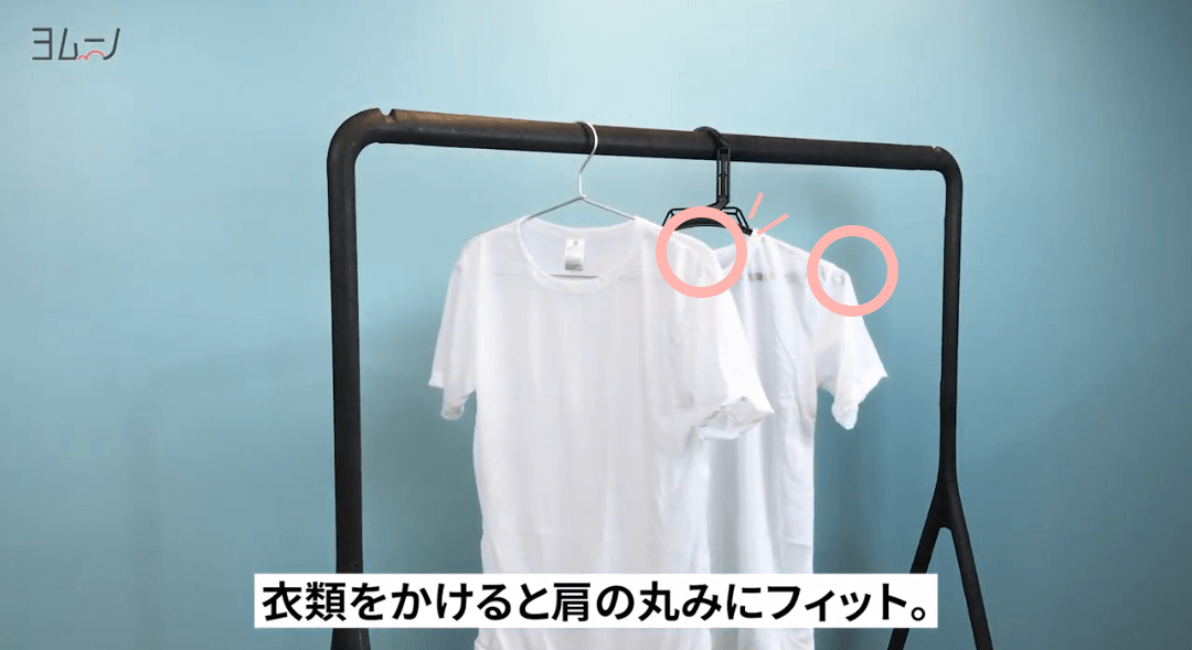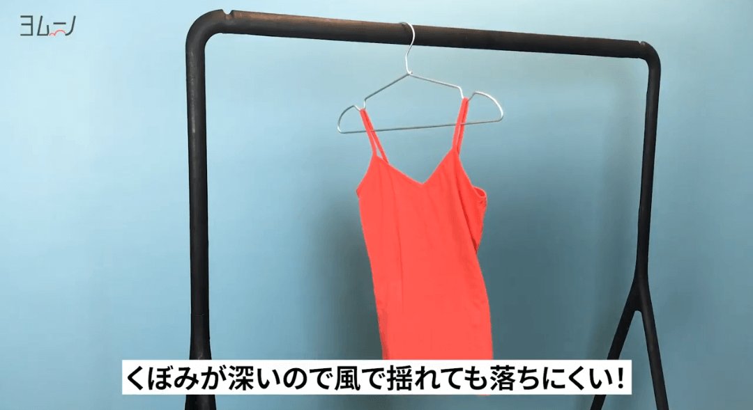 ハンガーに付いたくぼみは深いため、風で揺れてしまっても落ちにくいです。 首まわりが広い衣類も、このくぼみのおかげでずれ落ちにくいですよ。