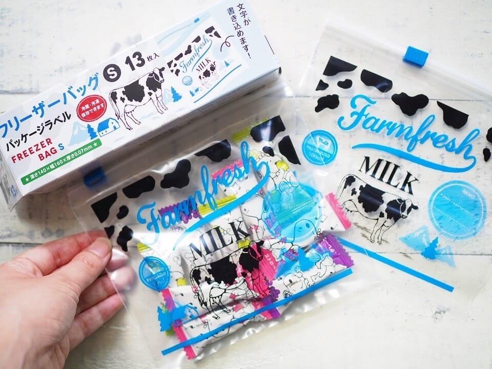 第10位は、セリアのおしゃれな牛乳パック風のデザインがかわいいフリーザーバッグです。