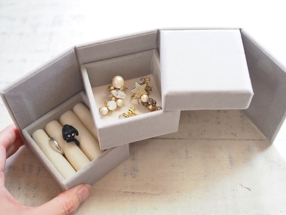 ベロア調の素材が高級感たっぷりで、2段式になったアクセサリーケースが200円なんて、二度見する価格です!