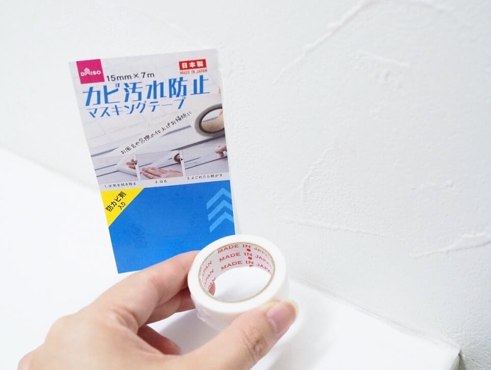 白いマスキングテープを汚れ防止に貼っておく掃除ワザがありますが、なんとダイソーから「カビ汚れ防止」効果のついたマスキングテープが登場!