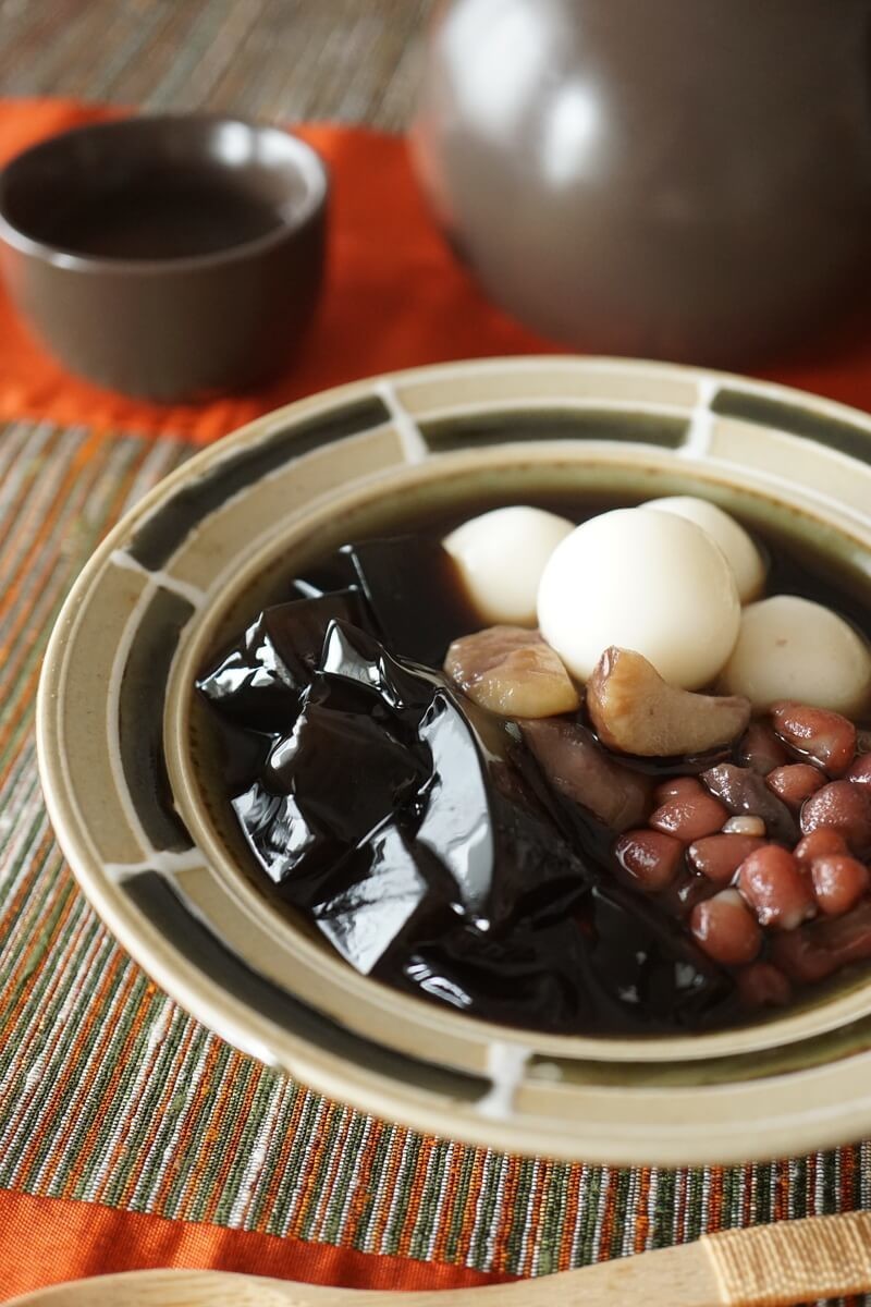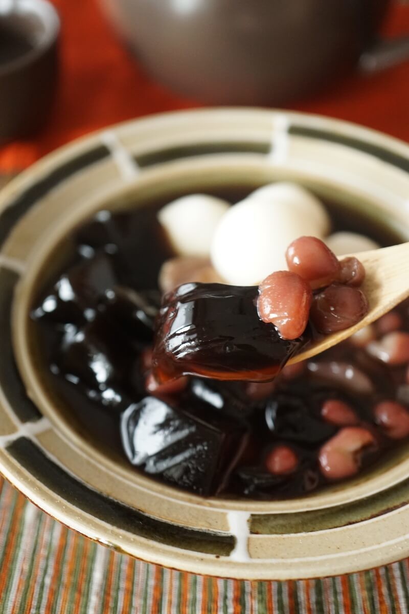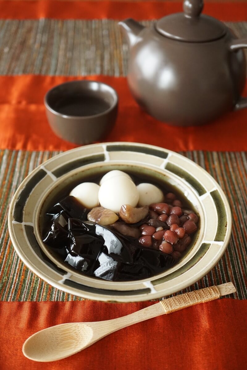 ネットで仙草ゼリーの画像を調べてみると、小豆やタピオカなどと一緒に食べられていました。