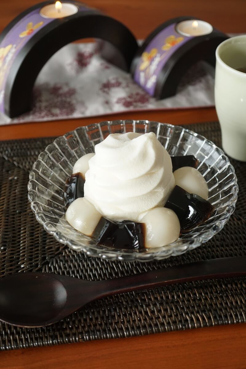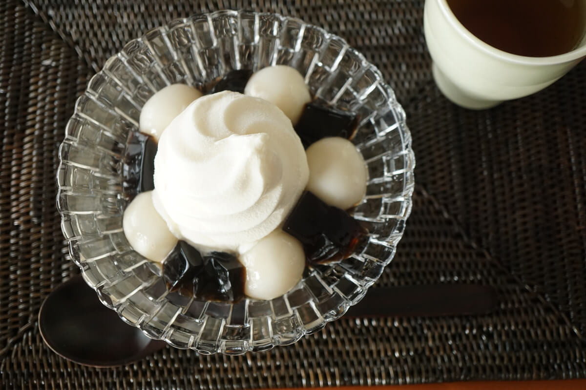 仙草ゼリーはほんのり苦みがあるので、台湾ではシロップやコーヒーフレッシュ、小豆、タピオカなどを加えて食べるのが一般的だそうです。