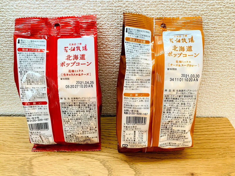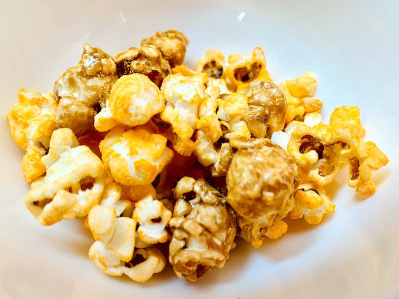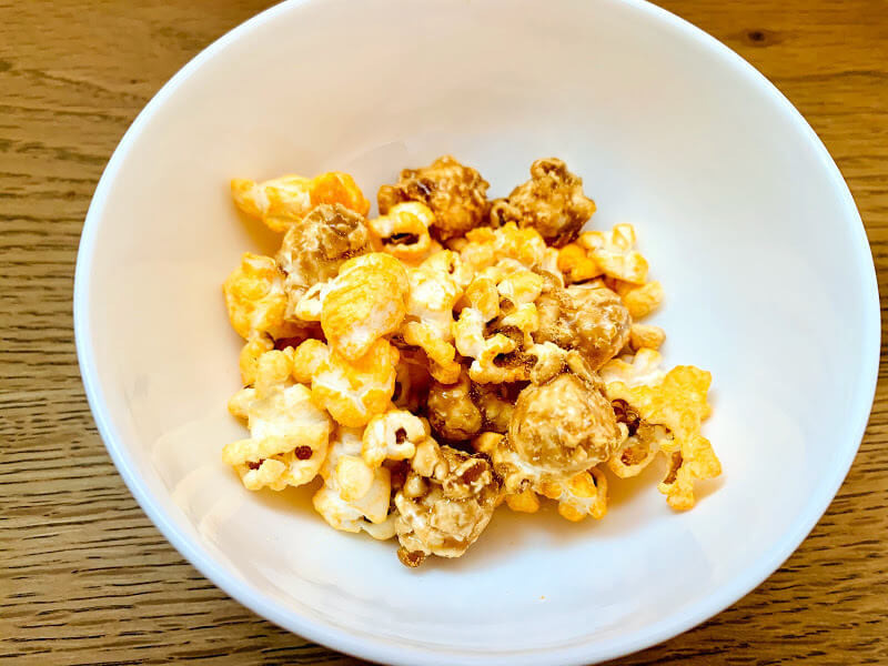 パウダーがかかったこの見た目、絶対生キャラメルの方が重たいはずですよね。あくまで私の感想ですが、ポップコーン自体の量に差があるわけではなく、1粒の重さの差なのかなぁと食べながら感じました。