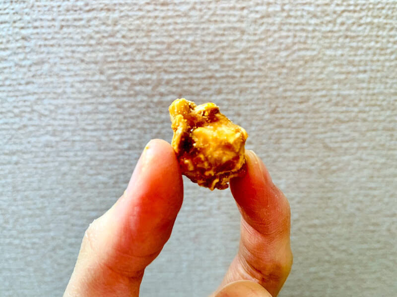 生キャラメル味はキャラメルでカリッとコーティングしてあるタイプです。映画館のキャラメルポップコーンも、このコーティングがしっかり絡んでいるのばかり選んで食べてしまいます。