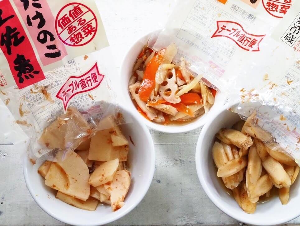 たけのこ・ごぼう・れんこんは下処理が面倒で避けがちな食材ですが、調理済みでおいしく煮物になったパックが100円前後で購入できるのが嬉しい!