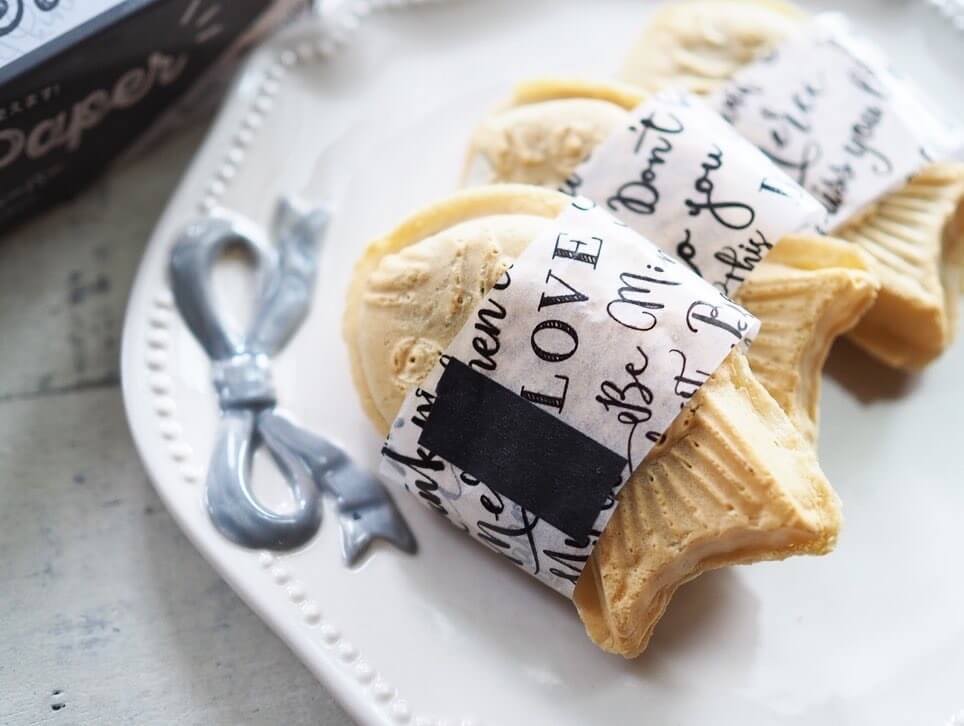 100均で購入できるワックスペーパーをカットして巻きつけるだけで、ミニたい焼きが上品な印象に!
