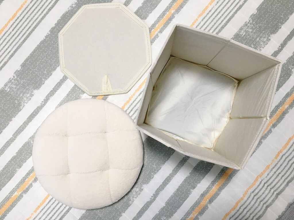 本体が大きめの八角形で収納力が高いのも◎、さわり心地の良さも◎です。