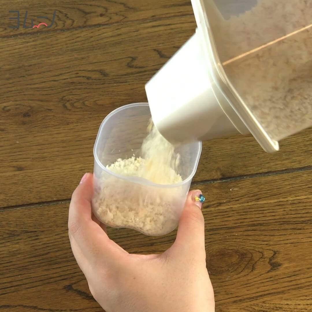 容器の口が広いため、食品を入れ替える際もこぼさず素早く入れられます。
