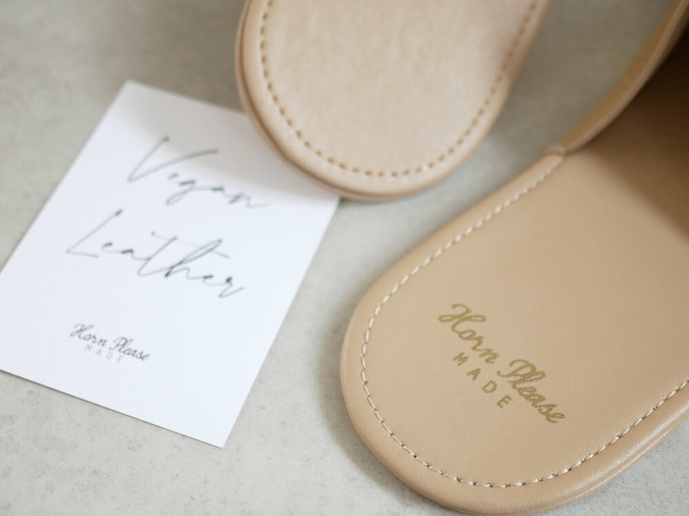 動物性のものを使用せず、人工的に革を再現した新しい素材「ヴィーガンレザー」を取り入れたスリッパで、お家でのリラックスタイムをもっと快適に、もっとおしゃれに、そして「環境汚染」や「動物愛護」に関心を持つ優しい時間にしませんか。