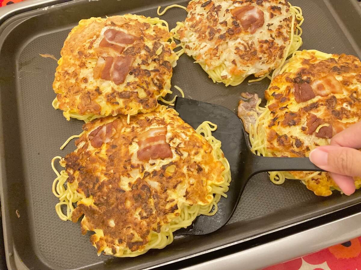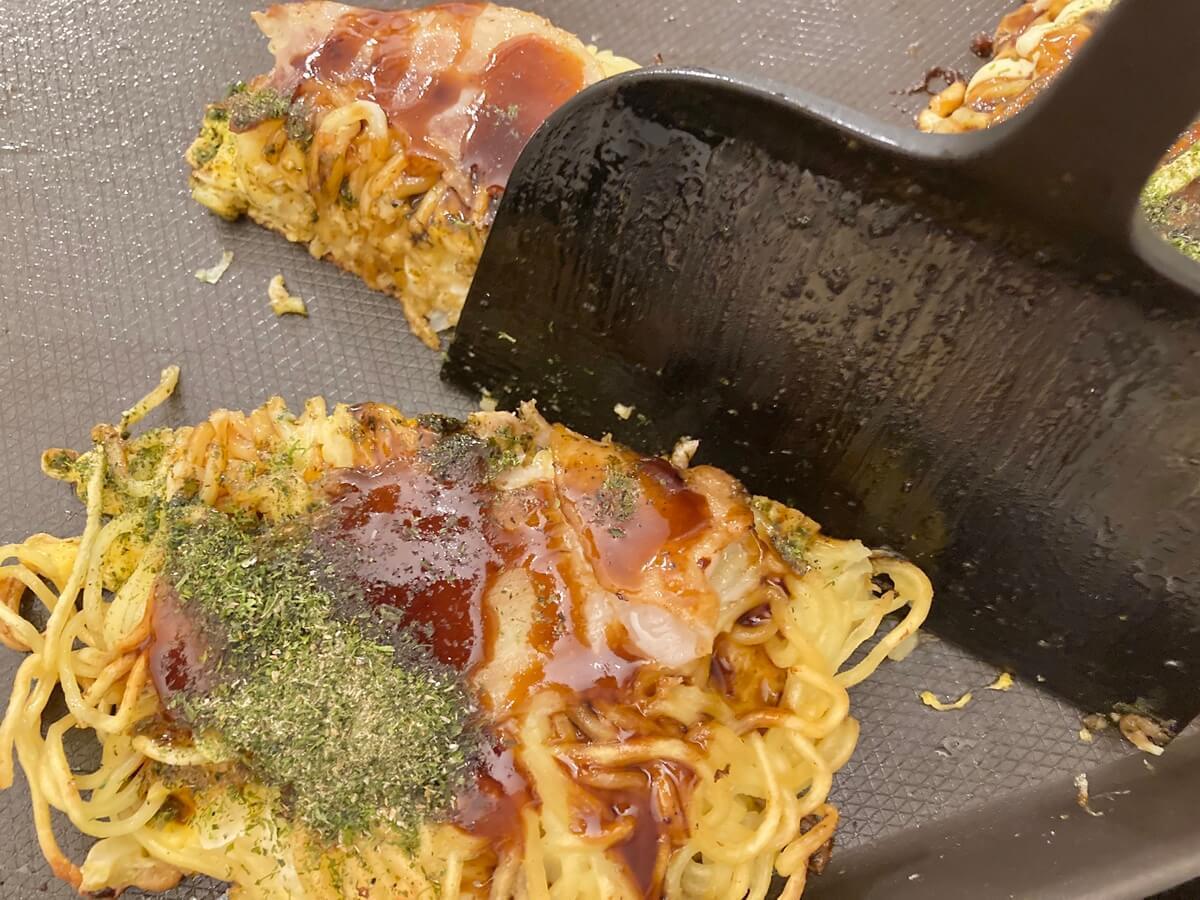 ただ、金属製だったのでひっくり返したり、お好み焼きをカットする際にプレートに傷をつけてしまっていました。