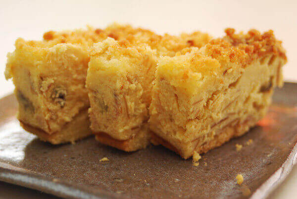 ケーキの表面にはたっぷりのシュトロイゼルが。見るからにこんがりで、サクサクした食感を思わせるルックスが食欲をそそります。