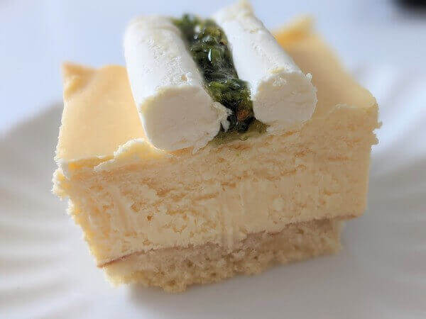 ピスタチオが食感のアクセントになっていて、プレミアムチーズケーキも良いですがこれもまた絶品! 私的にはプレミアムチーズケーキだと少し重いので、こちらの方が後味すっきりで好みです。とのことでした!