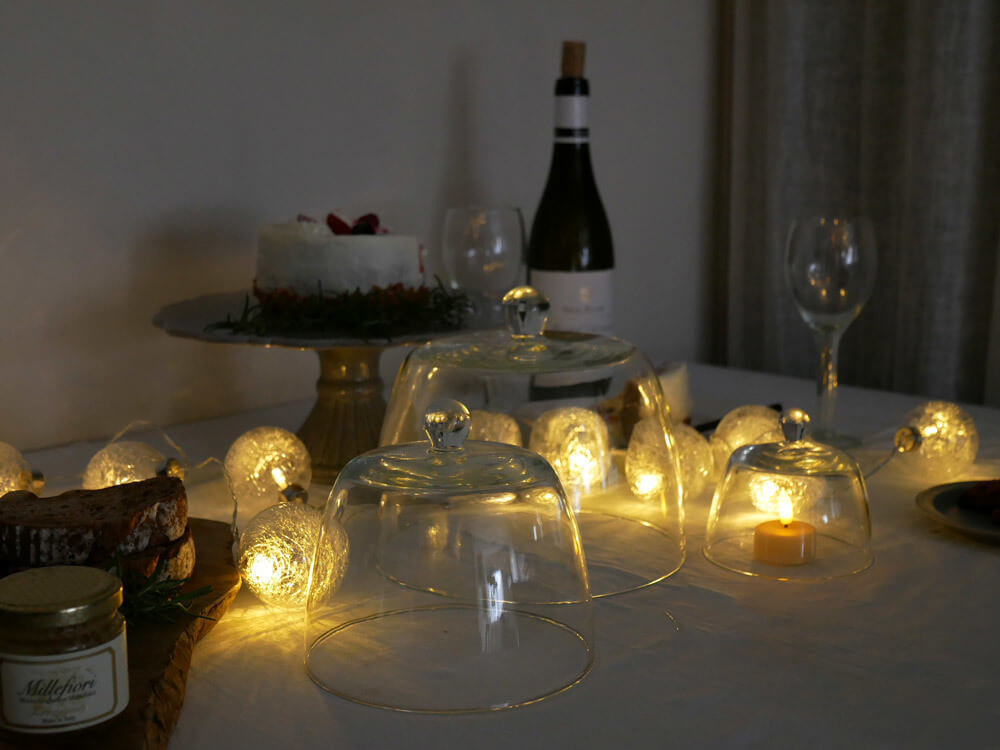 かぶせるだけなんて簡単!幻想的な雰囲気でおとぎ話のような世界観が素敵!たいしたことない料理もご馳走に見える!(笑)と、すっかり「リューズガラス フードカバー」の虜になっちゃいました。