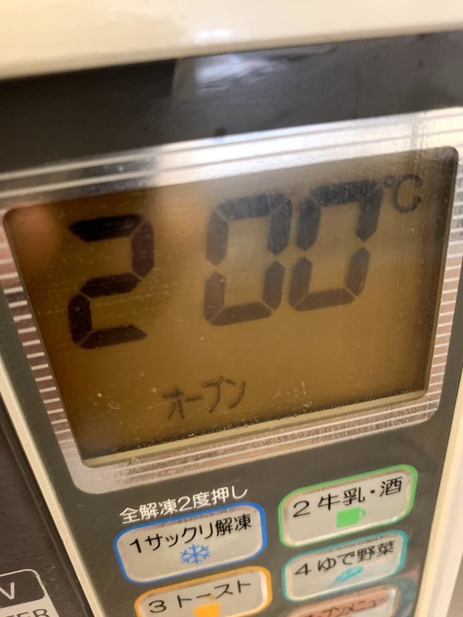 すぐには温まらないので、作業を始める前に200℃に予熱しておきます。時短につながりますよ!
