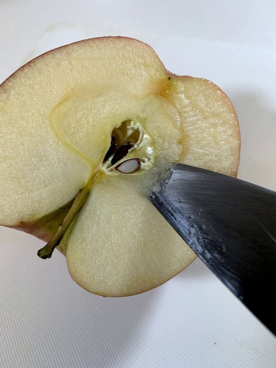 作り方③りんごの種をくりぬく