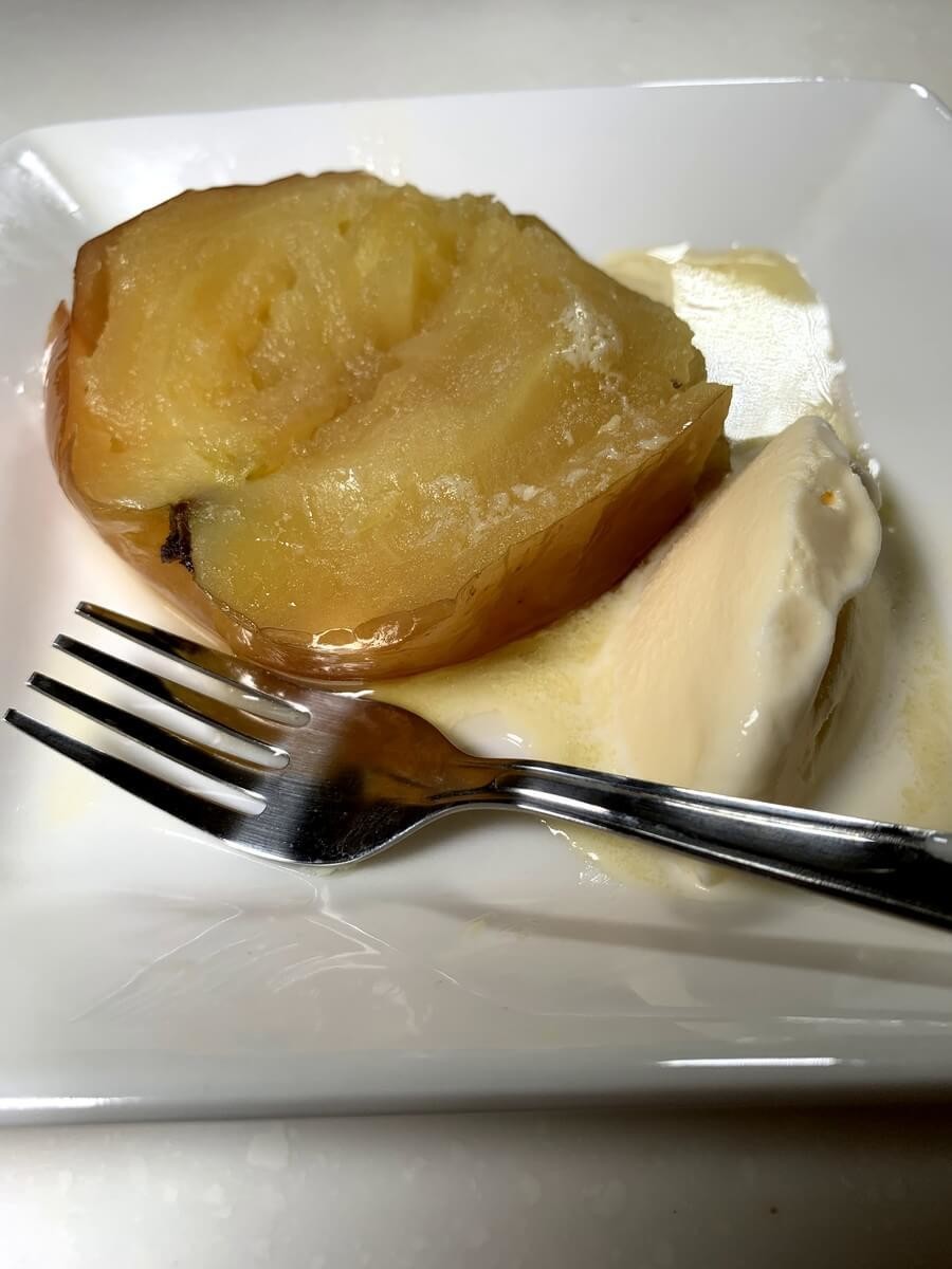 焼きりんごにバニラアイスを添えて、食べてみました!