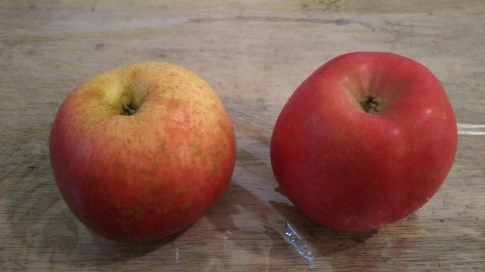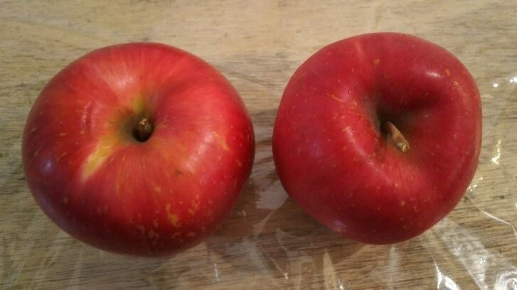 ▲適当に選んだりんご(写真左)、ポイント順守で選んだりんご(写真右)