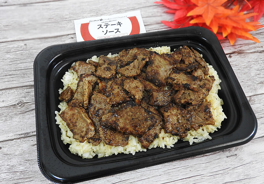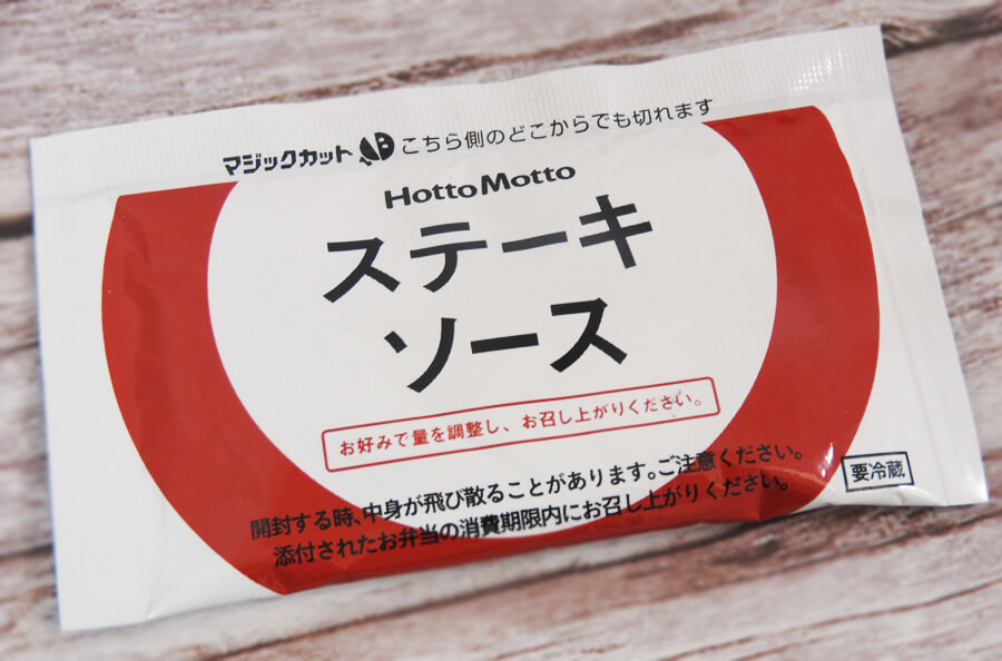ステーキソースはついていますが、そのままでもしっかりと味が付いています。まずはそのまま食べてみて、味に変化を付けたい時にステーキソースをかけると、食べやすいと思います。