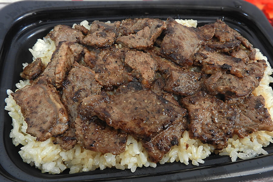 ライス約400gとボリュームたっぷりなほっともっと「ファミリーステーキガーリックライス」 1,180円(税込)。持ち帰り時にガーリックのにおいがプンプンしました。