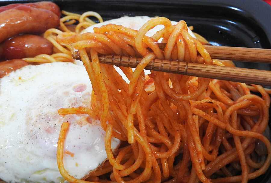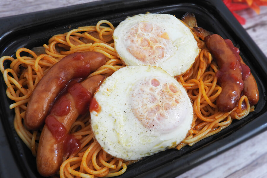 目玉焼き2つにウインナー4本がトッピングされており、決して質素過ぎるナポリタンでもない模様。
