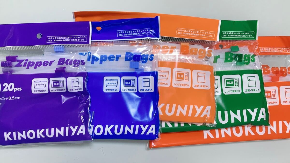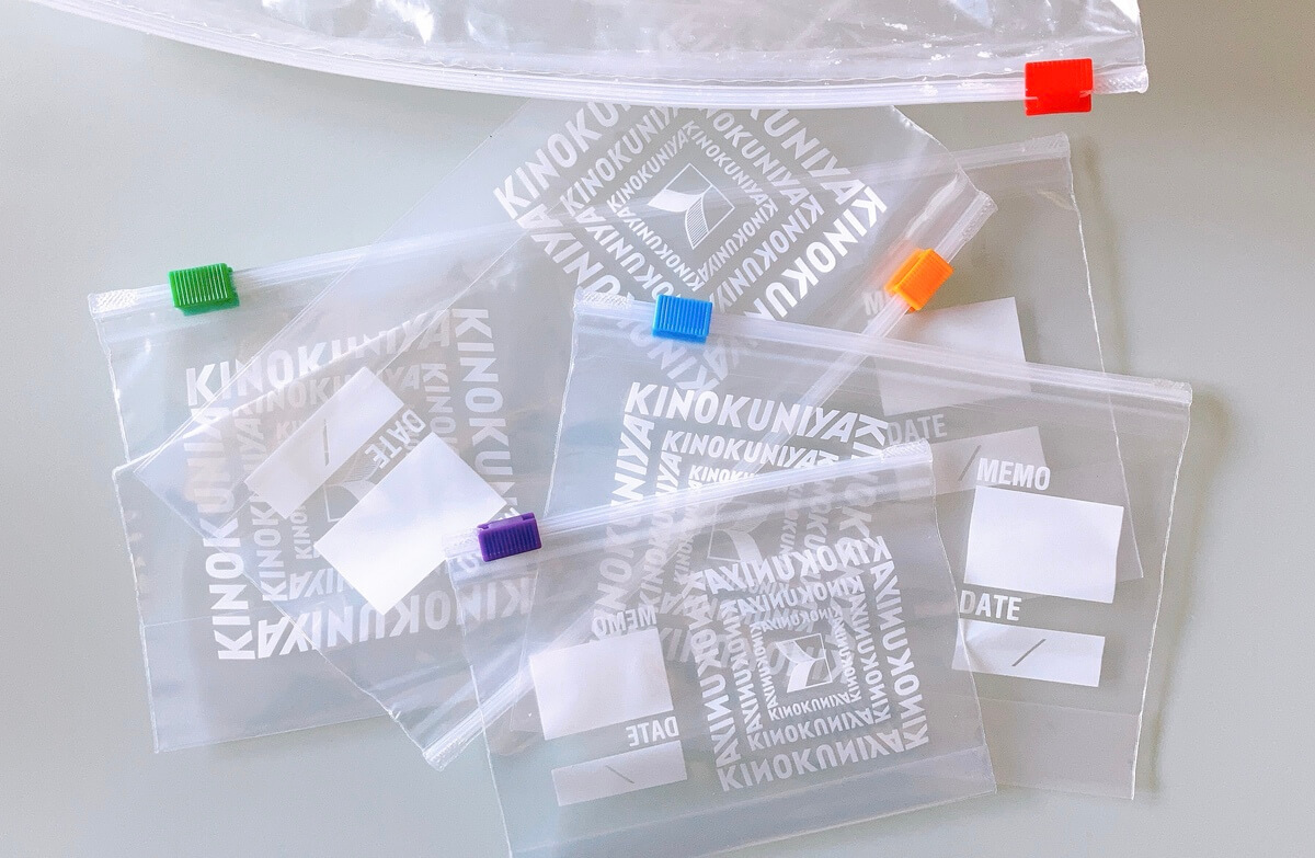 こちらが今話題になっている紀ノ国屋のスライドジッパーバッグ。すべて220円(税抜き)。