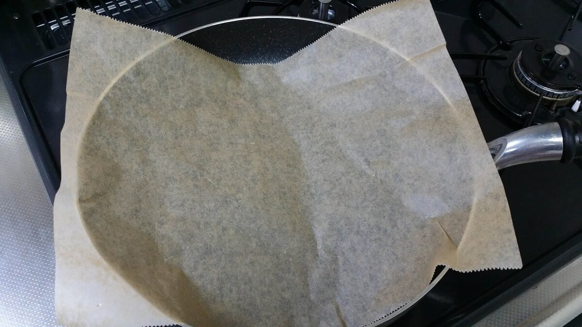 フライパン+シートで焼き魚①クッキングシートをフライパンに敷く