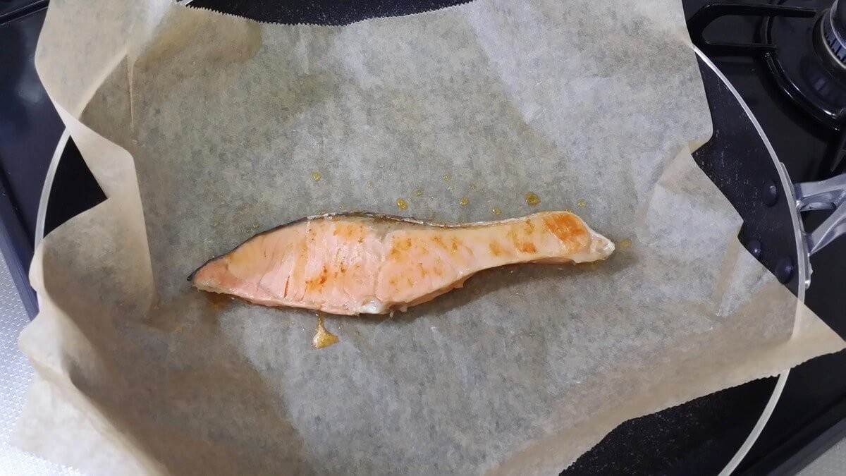 フライパンで魚を焼く時にクッキングシートを敷くという簡単な方法で、いつもよりおいしく焼くことができました。たったそれだけで?と半信半疑だったのですが、こんなに違うとは驚きです!