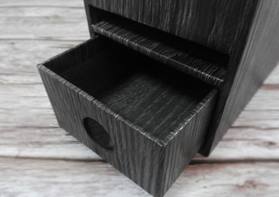 カインズへ行くと、木目調のおしゃれな卓上収納アイテムを発見しました。