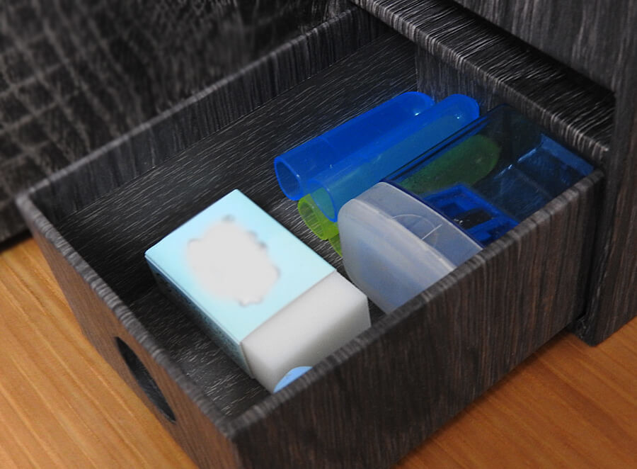 書類ケースやペン入れ下部を開け閉めする場面が多々ありました。しかし、紙が頑丈すぎるのか、子どもの力ではうまく開かないことも……。使っていくうちに慣れましたが、開閉がスムーズではない印象を受けました。