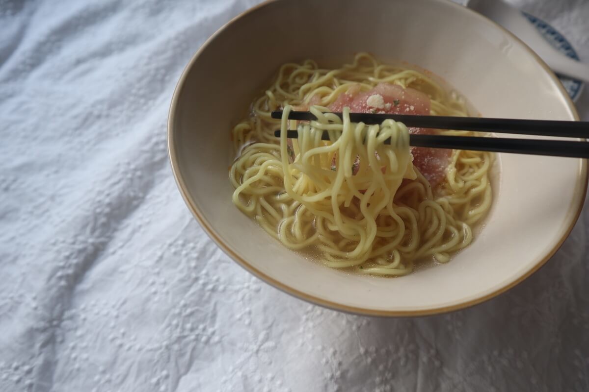 麺は細麺のストレート。ちゅるんとコシのある麺です。 さすがカルディ、麺にこだわっているだけあります!