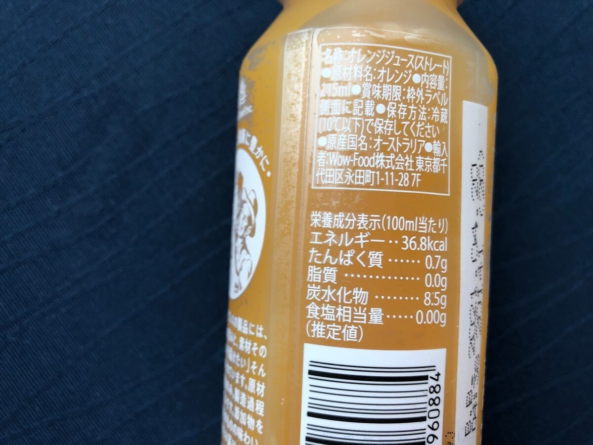 つまり、オレンジそのものを飲むということ。砂糖も加えられていません。215mlでお値段は1瓶248円と高めです。