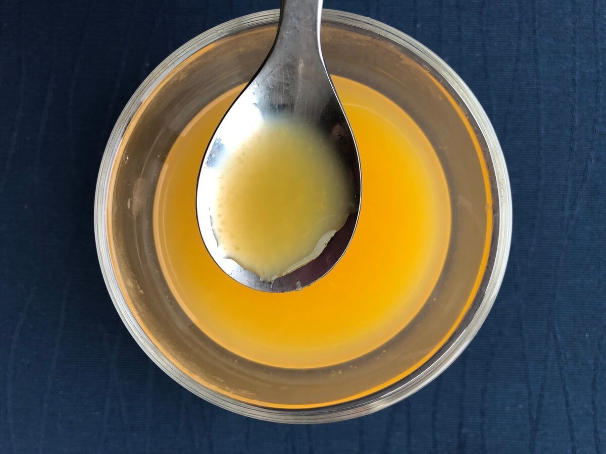 紅茶の透き通った茶色の水色が、ストレートオレンジで濁った茶色に変わりました。