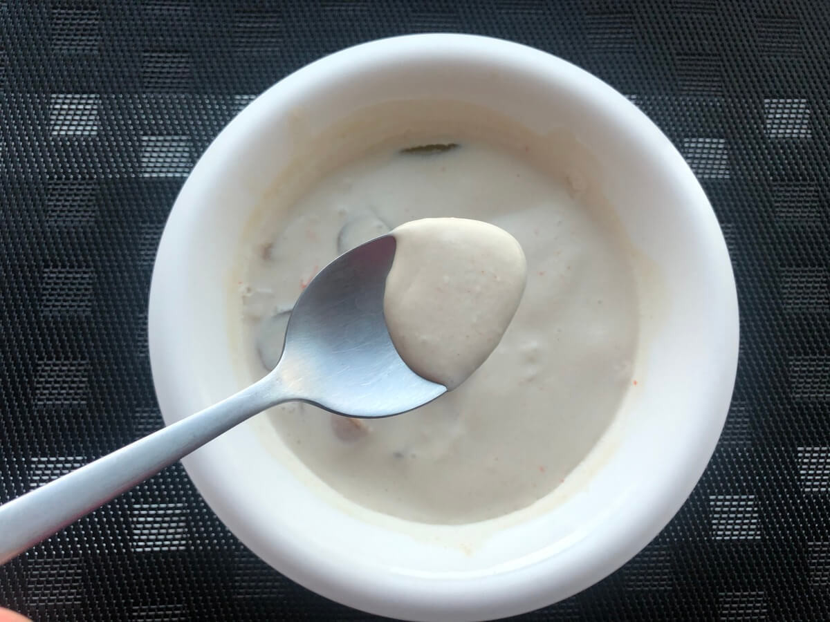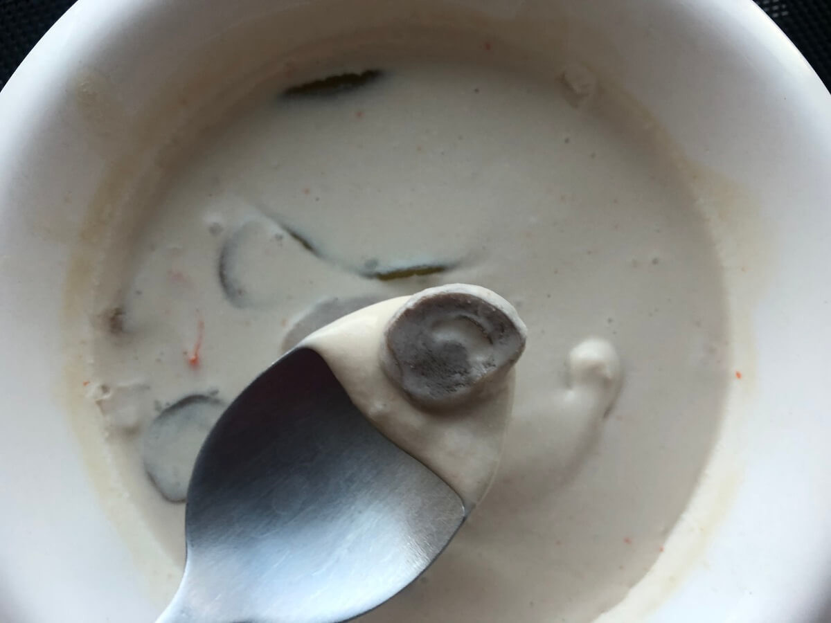 ココナッツなのに、マイルド感ゼロです。Soup Stock Tokyoの「トムカーガイ」はマイルドさが際立っていたのに対して、ヤマモリ「トムカーガイ」は容赦しません。