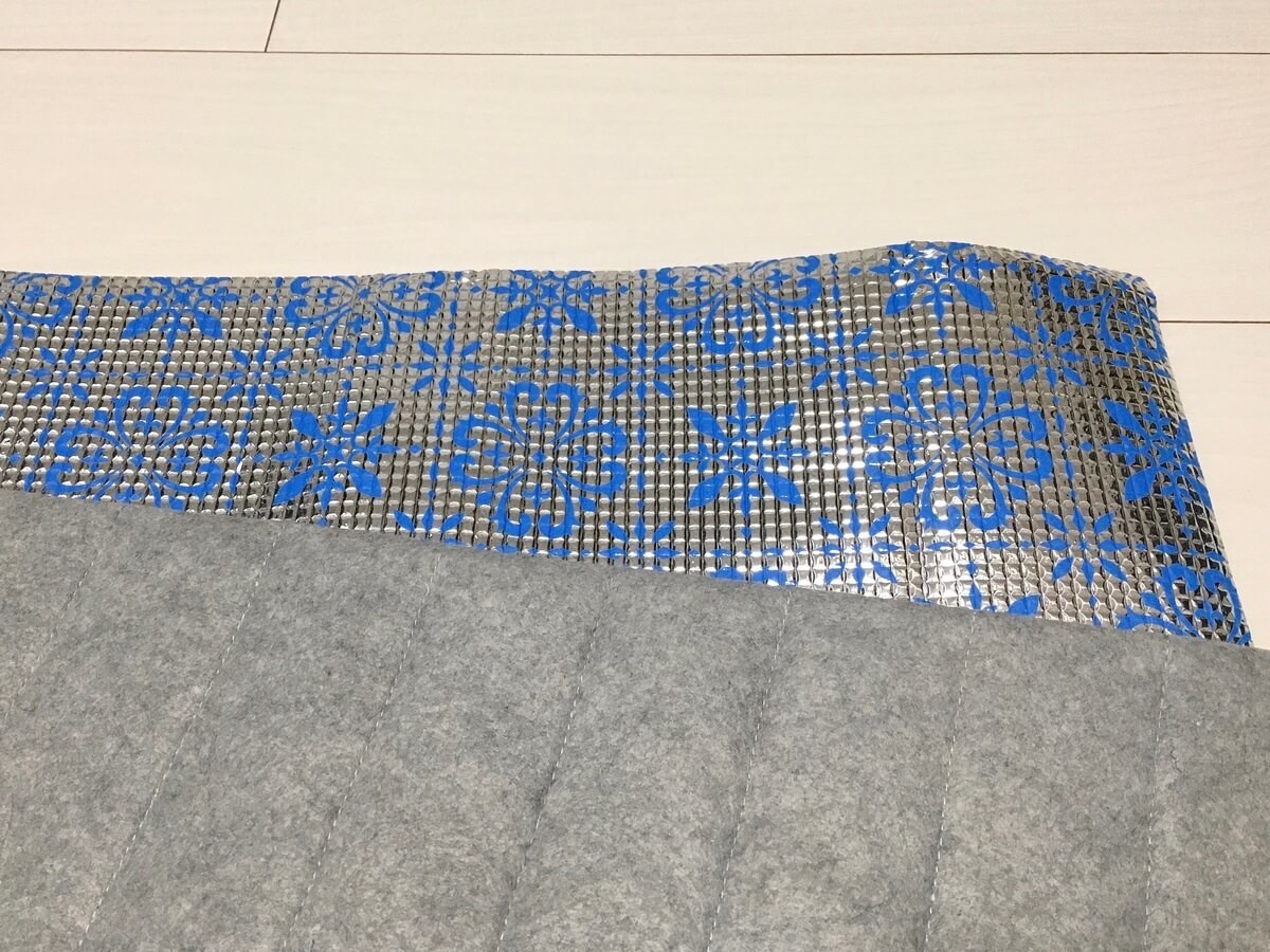 最後に紹介するのは床用アルミシート。床暖房があるお宅には不要かもしれません。が!築古賃貸住宅に住むため床暖房なんてあるはずもなく、さらに1階が駐車場なので床からの冷気がハンパない我が家。
