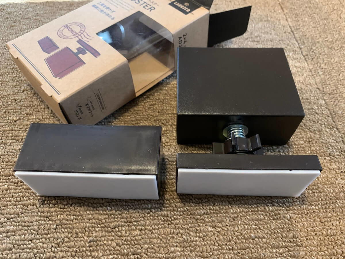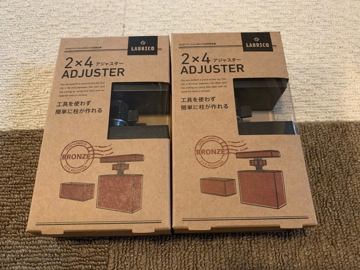 なお、こちらのアジャスターの箱には、「柱に対し片側に荷重がかかる場合は20㎏までとしてください。倒れる恐れがあります。」と記載されていました。