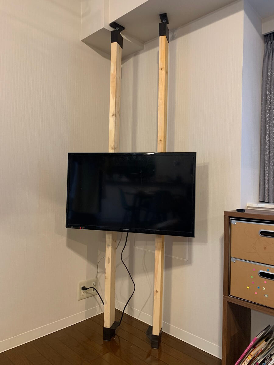 床に置いていると、テレビの後ろ側にホコリがたまってしまい、掃除が大変でした。