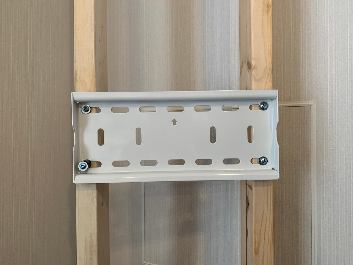 次に、テレビと柱それぞれに、壁掛け用の金具を取り付けます。